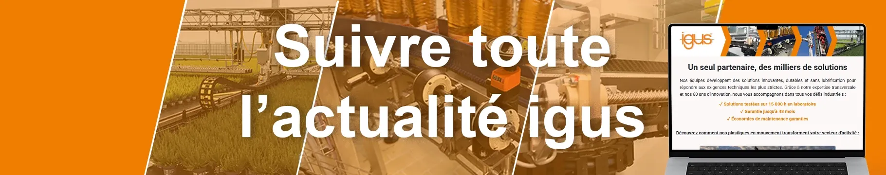 Utilisez nos configurateurs en ligne pour trouver les produits igus adaptés, les personnaliser et en calculer les durée de vie. Comparez les prix et les délais de livraison et commandez votre configuration directement en ligne. Téléchargez plans techniques, fiches techniques et modèles CAO.