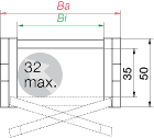 Attention : A la largeur extérieure de la chaîne viennent s'ajouter encore 31 mm pour la largeur des deux éléments de glissement !