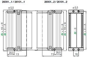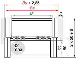 Attention : A la largeur extérieure de la chaîne viennent s'ajouter encore 14 mm pour la largeur des deux éléments de glissement !