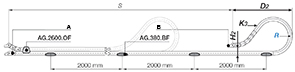 Série 2600AG, chaîne porte-câbles, ouverture dans le rayon interne