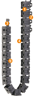 Série E1.10 - Chaîne Porte-Câbles, ouverture dans le rayon externe