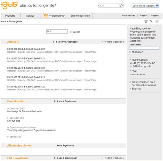 Fonction recherche disponible sur chaque écran du site Internet d´igus®