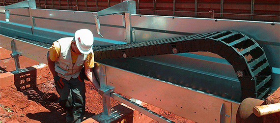 Nous assurons l´état des lieux, l´étude, le confectionnement et la livraison, voire même le montage complet de votre système de chaînes porte-câbles dans vos locaux, sur votre installation :