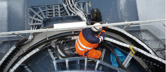 Evaluation de l´état technique des chaînes porte-câbles, des goulottes de guidage, des câbles et des serre-câbles