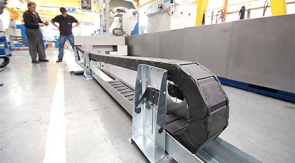 Lathes of up to 20m also result in particularly long travels. A guidelok energy supply system is used here.