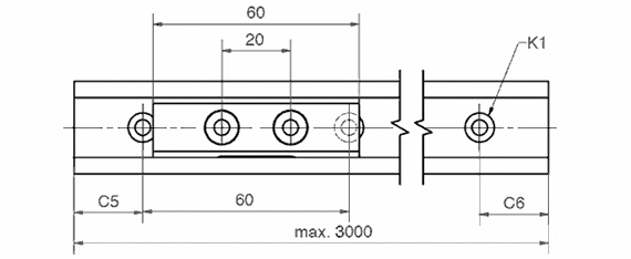 N° de commande Longueur d´arbre maxi a C4 A3 C5=C6 h h1 K1* ly lz Poids du rail Prix / m