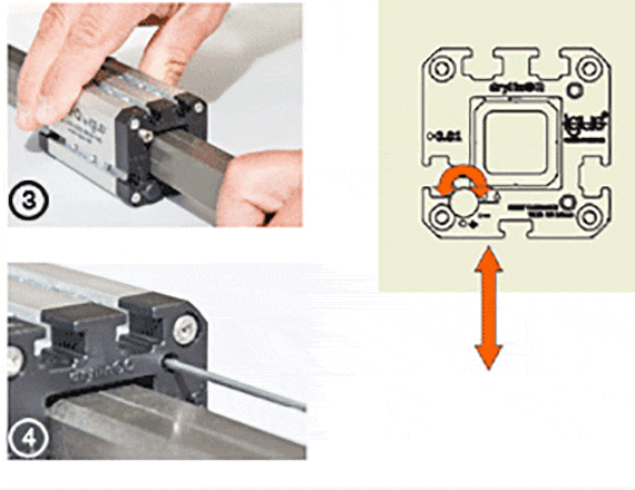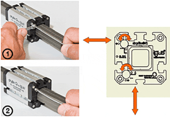 Les guidages carrés drylin® Q exigent toujours un jeu minimum entre le chariot et le profilé de guidage. Ils sont livrés prets à être montés avec un jeu préréglé. Le jeu peut être ajusté a posteriori si besoin est. Cette opération devrait être effectuée sans charge.
