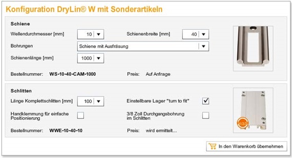 QuickLin - Configurateur drylin® avec produits spéciaux