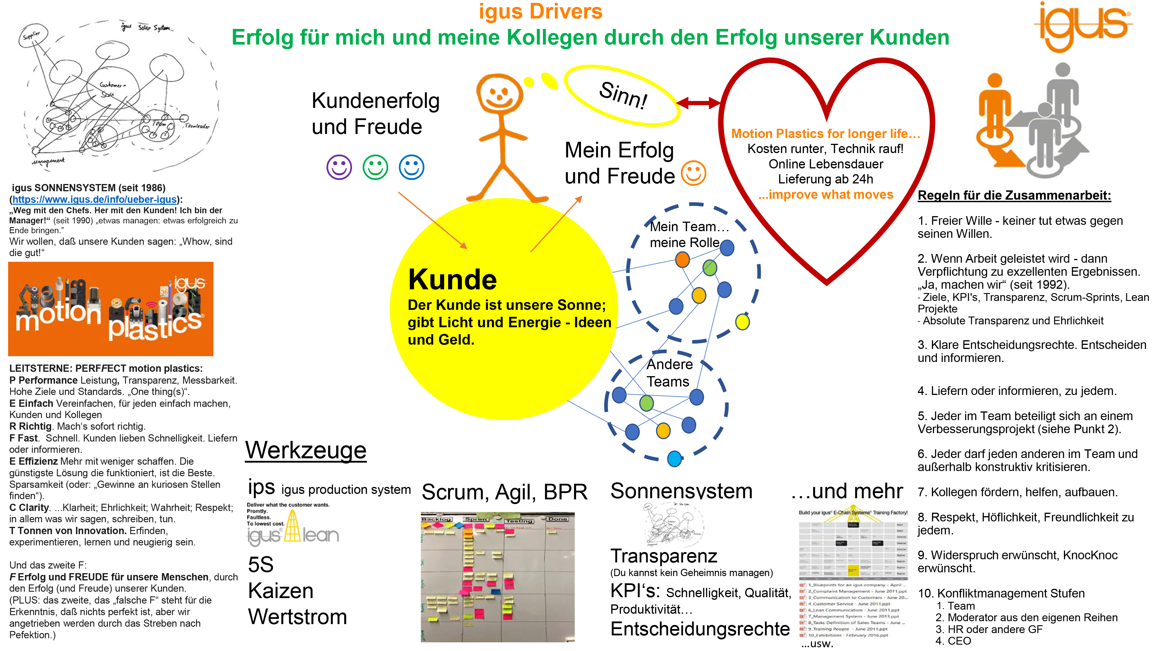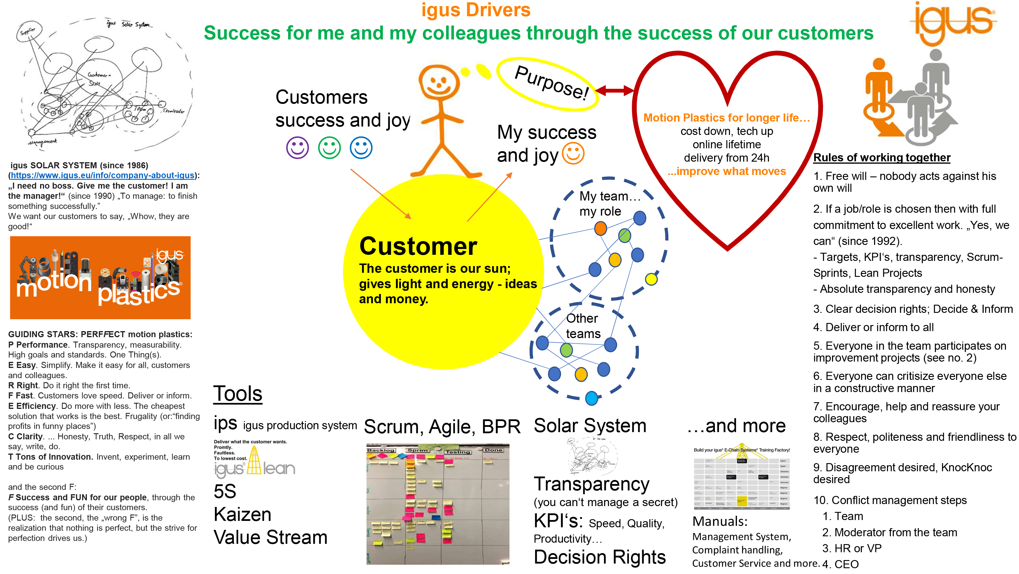 Chez igus, toutes les activités gravitent autour du client. Le client a pour nous la même importance que le soleil pour la vie sur notre planète. Le soleil fournit lumière, chaleur et énergie. Le client nous donne des idées, du travail et nous apporte croissance et progrès. Le « système solaire igus » est solidement ancré dans la philosophie de notre entreprise. Employés et équipes gravitent autour du client comme des planètes, ils écoutent ses désirs et trouvent une solution à ses problèmes. Quant le client est satisfait, nous le sommes aussi.